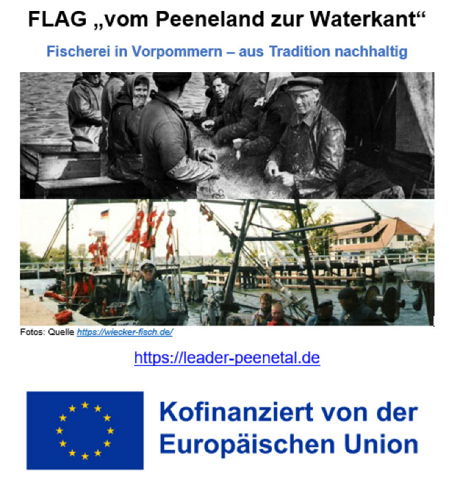 Landkreis Vorpommern-Greifswald. Die Strategie für lokale Entwicklung (SLE) wird im Rahmen des Europäischen Meeres-, Fischerei- und Aquakulturfonds (EMFAF) in der Förderperiode 2021-2027 durch die FLAG (Fischerei Lokale Aktionsgruppe) „Vom Peeneland zur Waterkant“ umgesetzt.